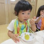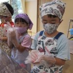 きょうは、ひまわり組(年長)のお友だちが、チャレンジクッキングを行いました。