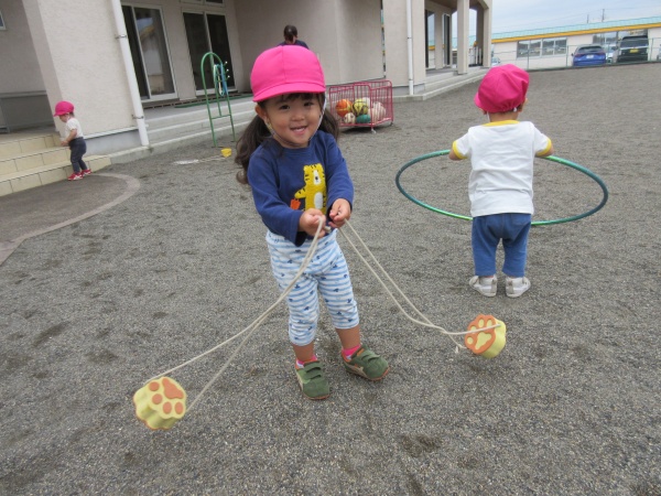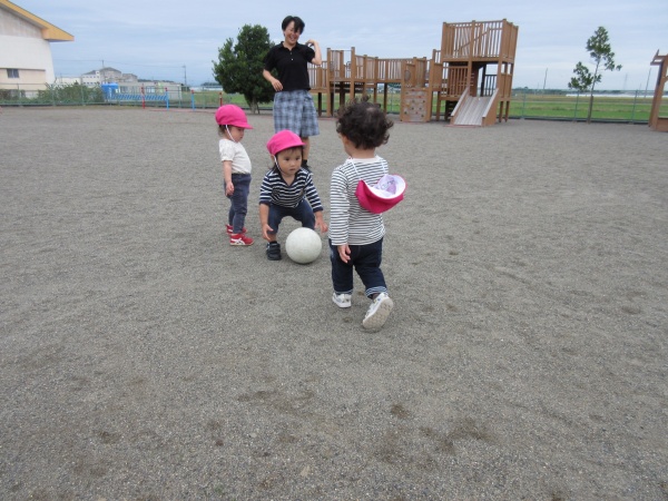 朝から涼しい風が吹き、今日は、小さいお友だちは、戸外でたくさん遊ぶことができました。