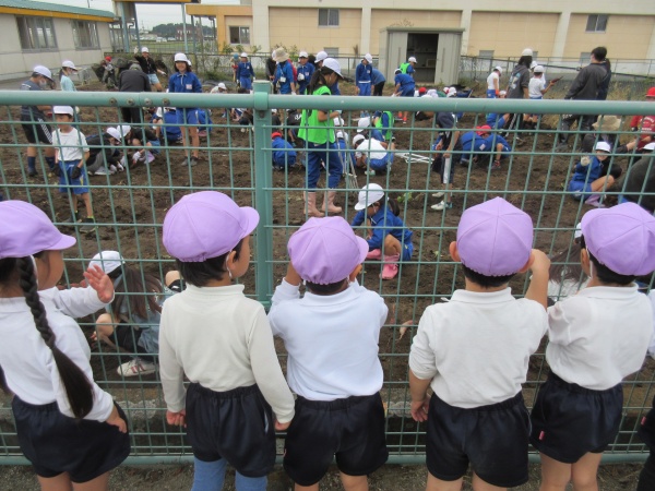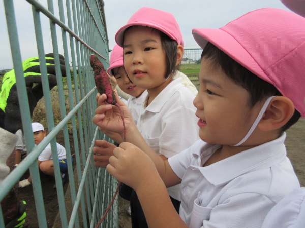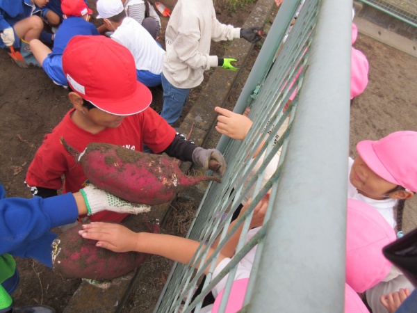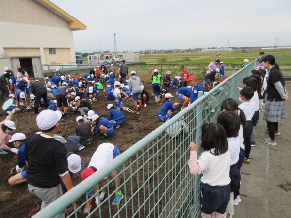 さつまいも掘り 本郷小学校さんで行われていた、さつまいも掘りを見学しました。 小学生のお兄さん、お姉さんがさつまいもを掘り起こすたびに 子ども達から歓声が上がります。 本郷小学校の皆さん見学させていただきありがとうございました。