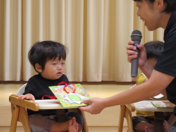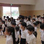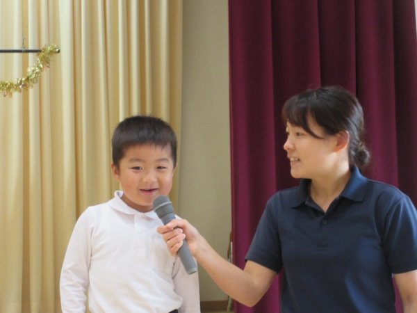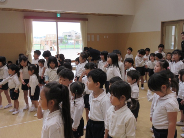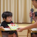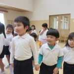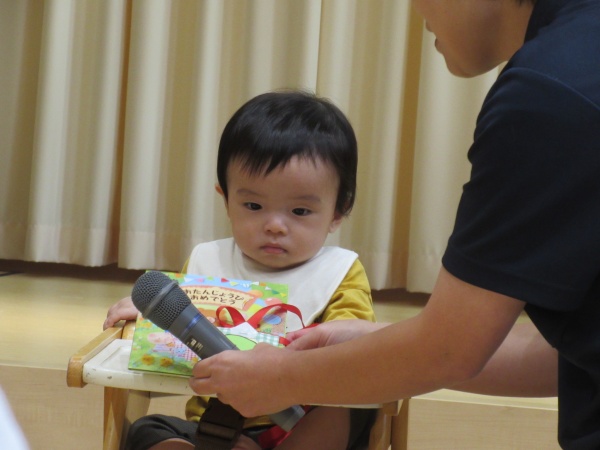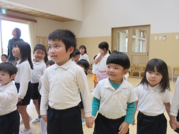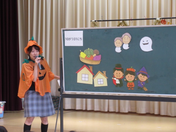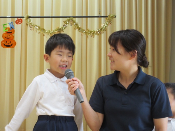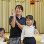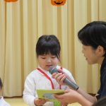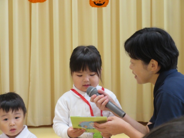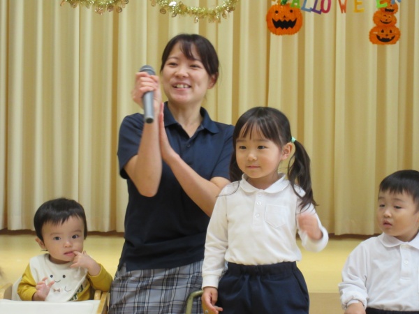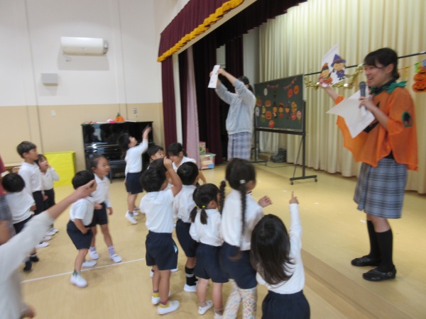 誕生会 朝夕は肌寒さが感じられる季節となりました。 今日は遊戯室に集まり、10月生まれのお友達の誕生会がありました。 誕生児さんは、前に出てお名前や年齢などの質問に元気に答えてくれました。 誕生会の後はハロウィンにちなんだクイズゲームを行いました。 10月生まれの皆さん、お誕生日おめでとうございます!