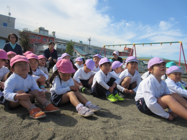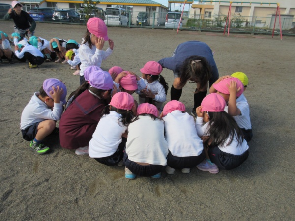 静かに放送を聞き、保育者と一緒に避難することができました。