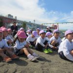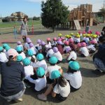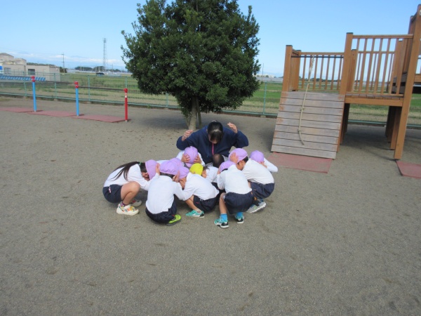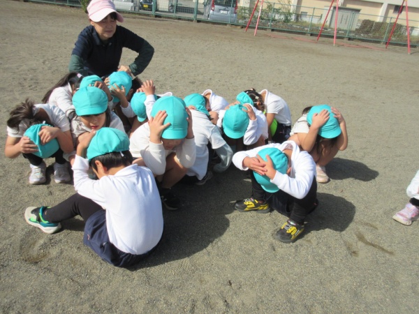 園内放送で笛の音が聞こえると避難訓練が始まります。