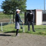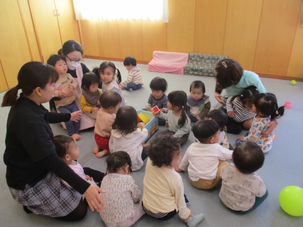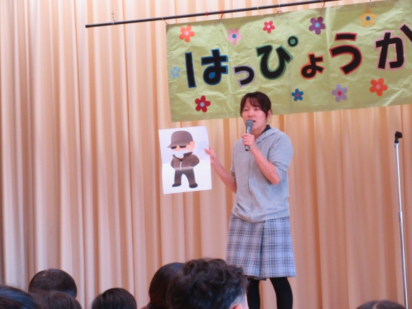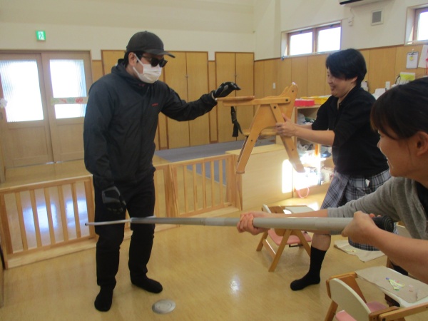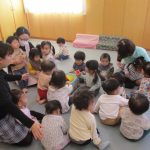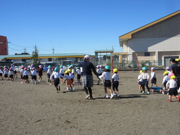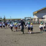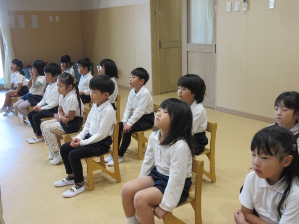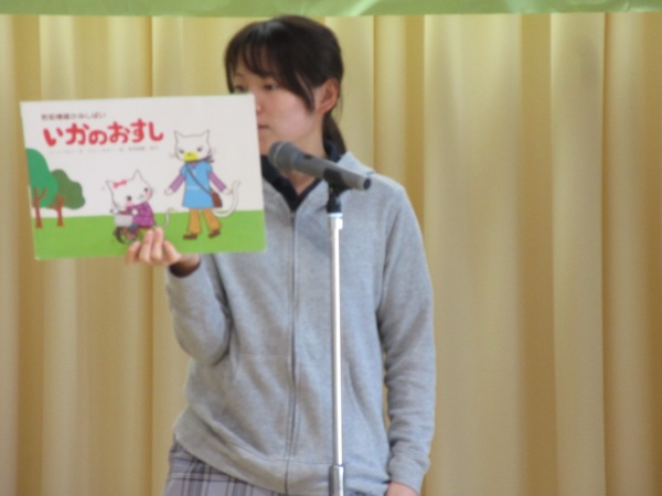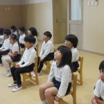 不審者対応訓練 今日は交通安全教室が行われました。 今回は「不審者対応」について子どもたちとお勉強しました。 遊戯室に集まり、不審者とはどんな人か、 あやしい人が来たらどうしたらよいのかなど話を聞きました。 その後、不審者対応訓練が行われました。 不審者となった職員が園内に侵入し、子どもたちも真剣に訓練に参加していました。