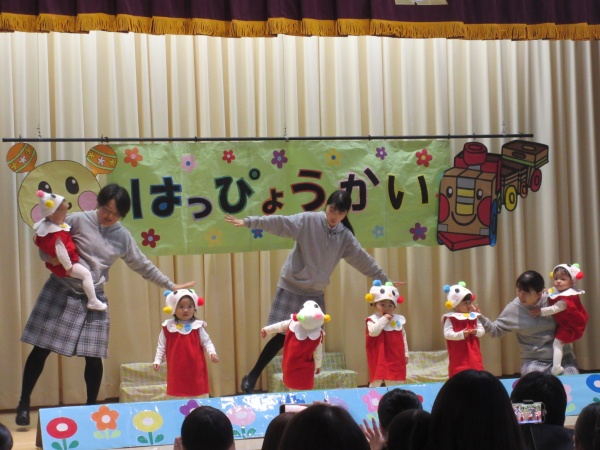 第19回蓼沼保育園発表会♪ 朝からお日様がキラキラと輝き、暖かい日となりました。 今日は、第19回発表会が行われました。 沢山のお客様を前に緊張している姿も見られましたが、頑張って発表することが出来ました。 保護者の皆様のご協力ありがとうございました。