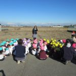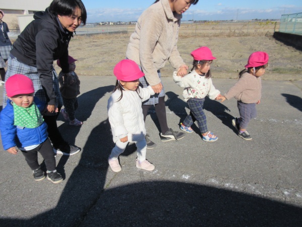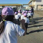 今日は、大規模火災を想定した訓練で、お隣の小学校まで避難を行いました。
