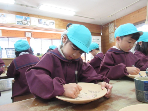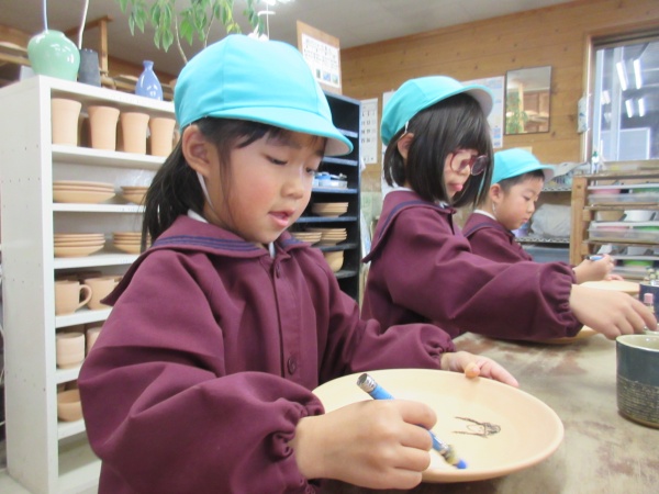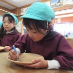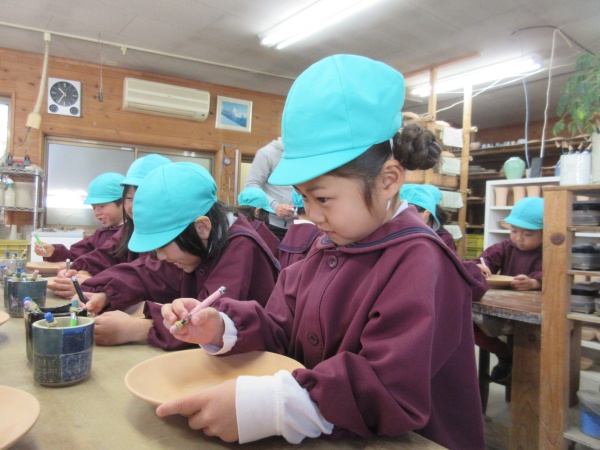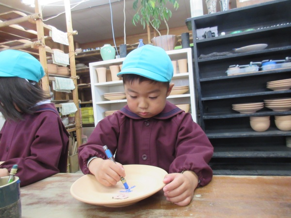 絵付け体験 ひまわり組さんが絵付け体験に行ってきました。 場所は益子町にある「やまに大塚」さんです。 まずはお皿の扱い方や、絵を描くときに注意する事などのお話を聞きます。 お話をよく聞いたら将来の夢をそれぞれ描いていきます。 絵皿のお渡しは卒園式の日となります。 それまで楽しみにお待ちください。