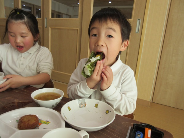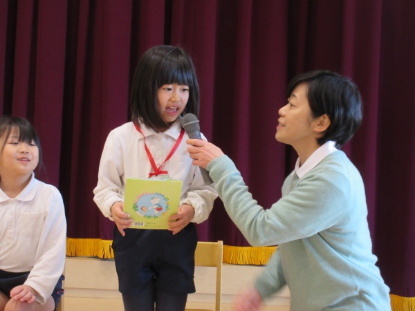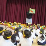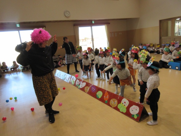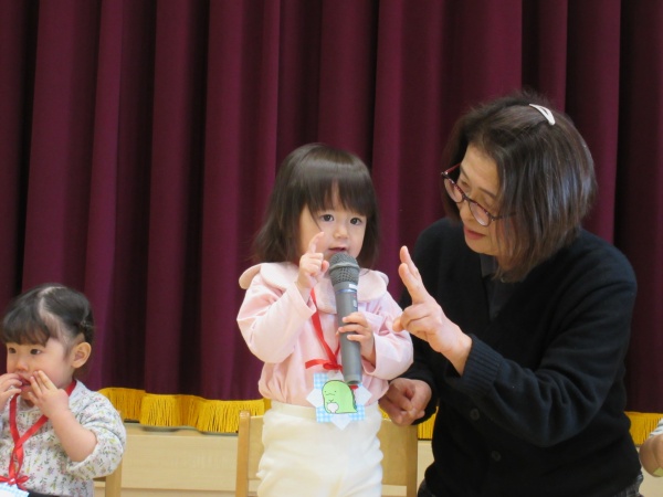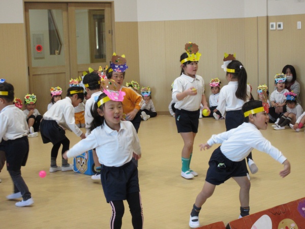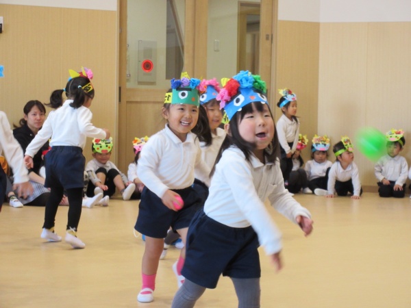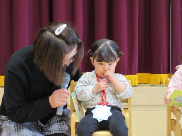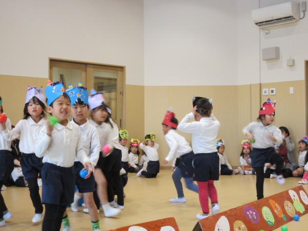 お誕生会の後は、節分のお話を聞いたり、お歌を歌って楽しみました。